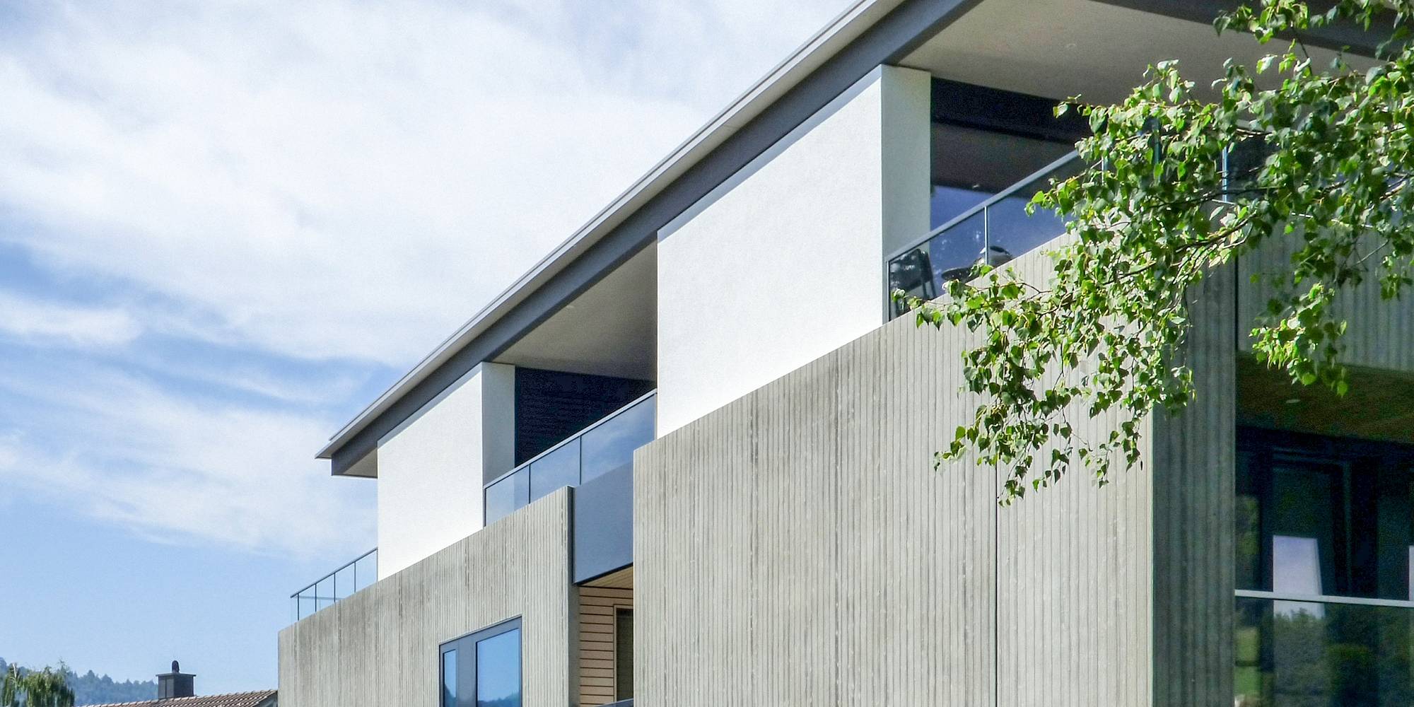 В Унтерагери (Unterägeri) Швейцария бе завършен един нов забележителен проект: къща тип близнак със студио, проектираната от Laffranchi Architektur AG сграда успешно съчетава модерните дизайнерски принципи с приветлива жилищна атмосфера. Благодарение на уникалната си фасада, къщата стана истинска забележителност за района. Взелият активно участие в проектирането на сградата архитект Сандро Лафранки обяснява: „Въз основа на изискванията на клиента и съответните законови ограничения създадохме обем, който архитектурно си играе с контраста между солидност и лекота. С избора на материали за фасадата искахме да засилим това взаимодействие.