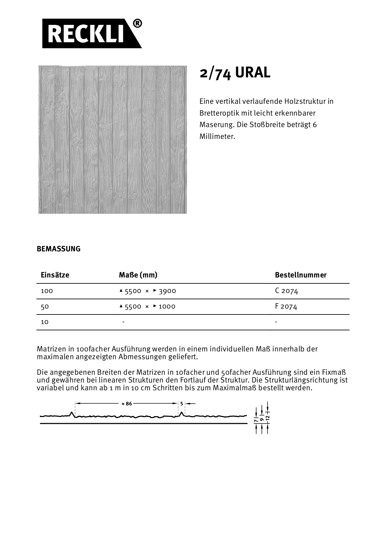 Благодарение на експертния опит в работата с видим бетон на Gebrüder Hodel AG и готовата бетонна смес доставяна от STEINAG ROZLOCH AG, проектът бе изпълнен прецизно и на високо професионално ниво. Фасадата и стените от видим бетон бяха изпълнена с общо 65 кв.м структурни матрици за видим бетон от богатата гама стандартни матрици на RECKLI GmbH.