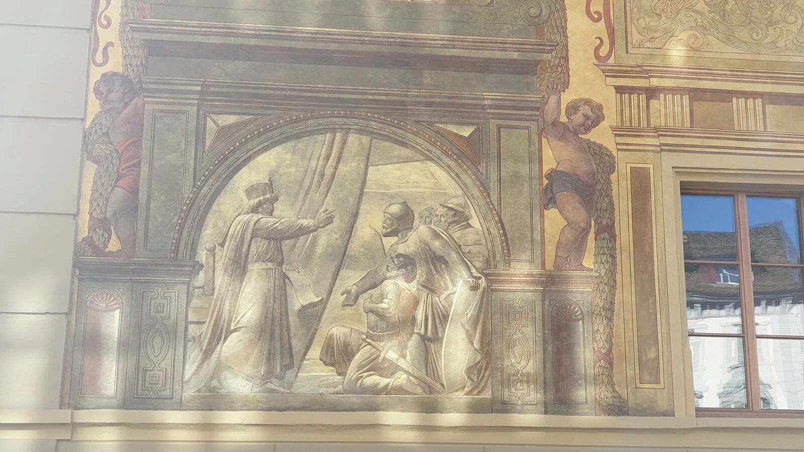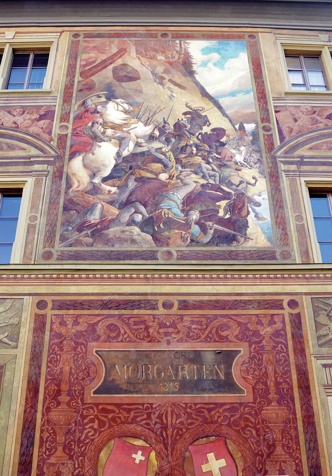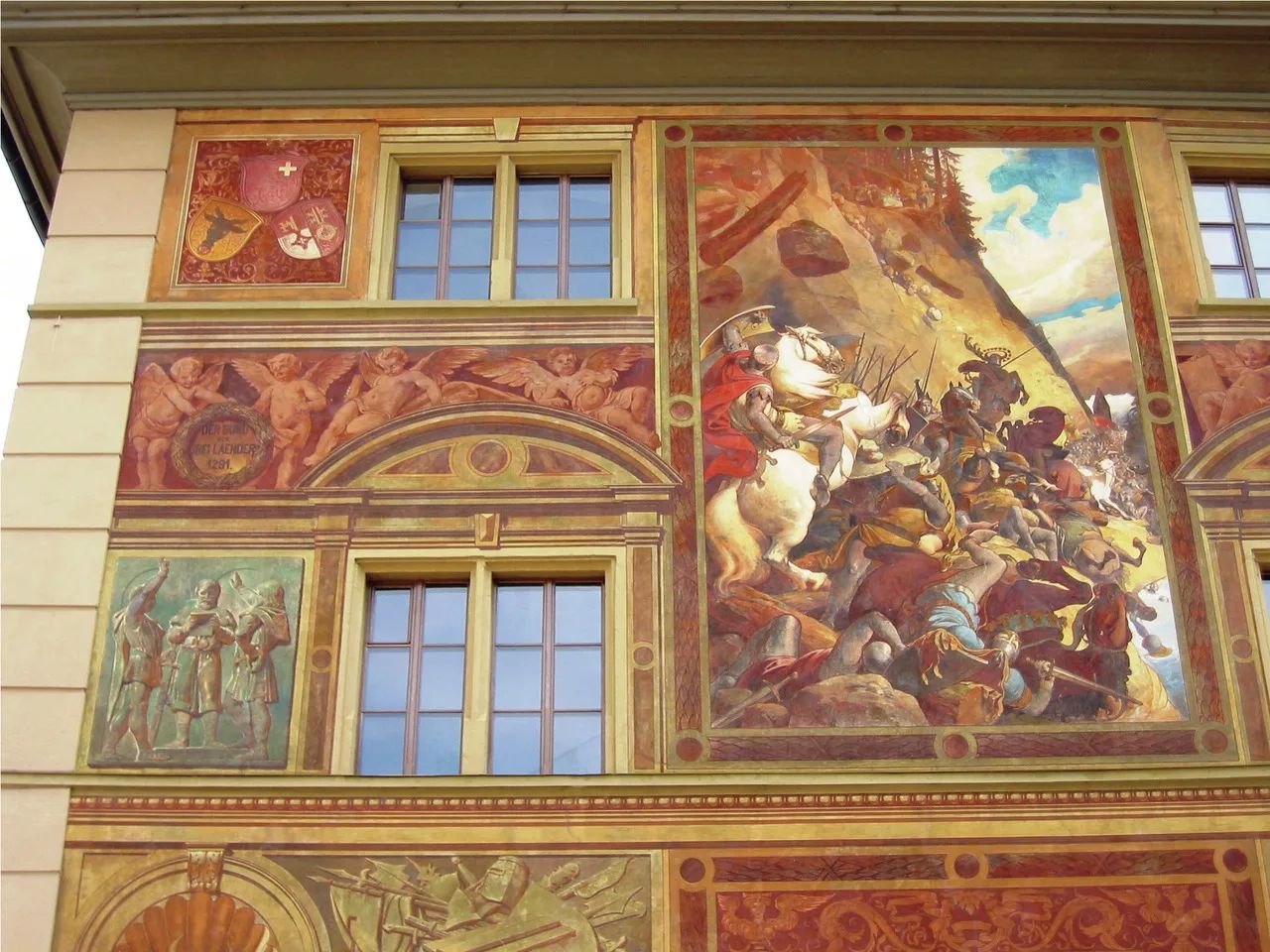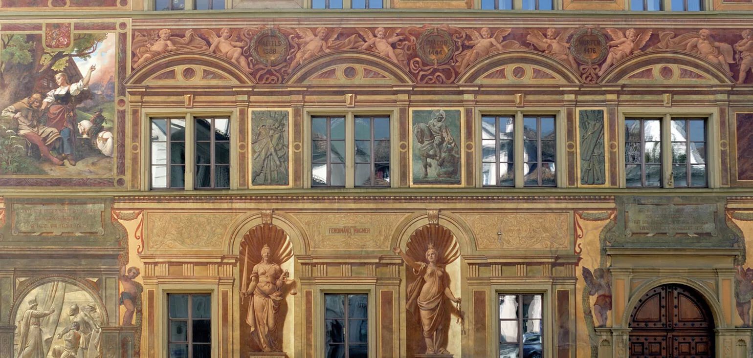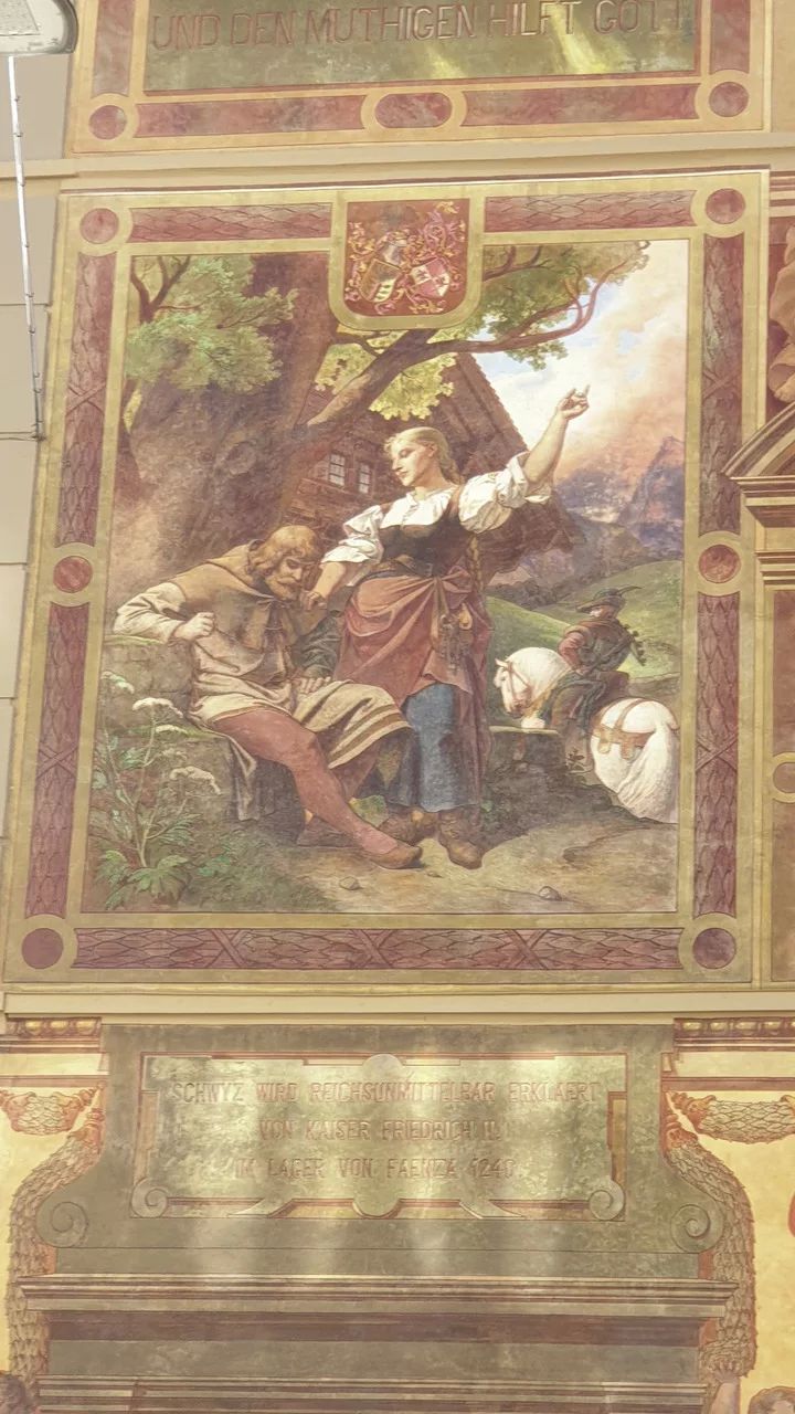 Стенописите изобразяват ключови сцени от швейцарската история, като по този начин се съчетава изкуството с националната символика: