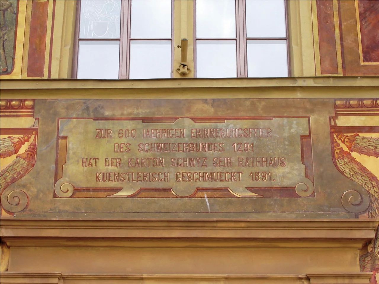 През 1890 г. Националният съвет и Съветът на щатите приемат решение да отбележат 600-годишнината на Швейцарската конфедерация в централна Швейцария. Като първостепенно място за провеждане на тържествата е избран централният площад на гр.Швиц. Основна причина за този избор е намерението да се насърчи политическата интеграция на католическите кантони на страната, които са подкрепяли губещата страна след войната Зондербунд от 1847 г. През 1891 г. на художника Фердинанд Вагнер, рисуващ основно исторически сюжети е възложено да нарисува сцени от швейцарската история върху фасадата на кметството на града, като част от подготовката за предстоящите тържества